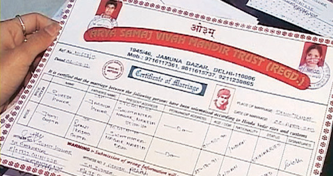 Providing official Arya Samaj marriage certificate.